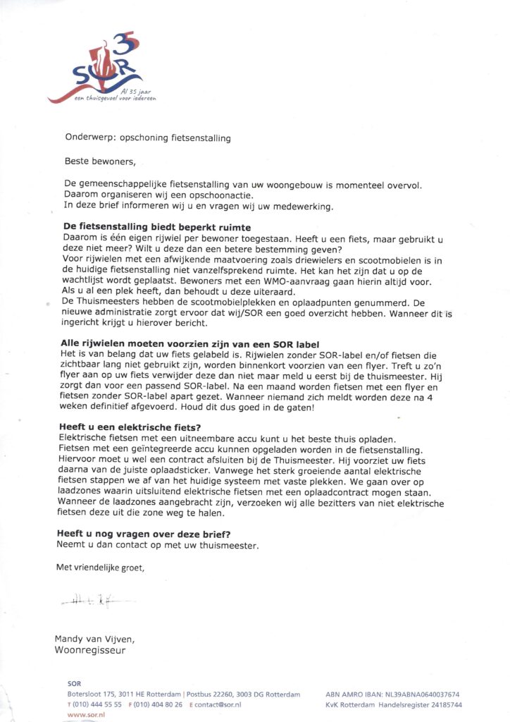 Fietsenstalling brief SOR feb 26