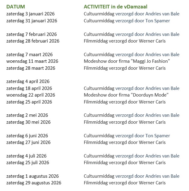 vDamzaal zaterdag schema 26